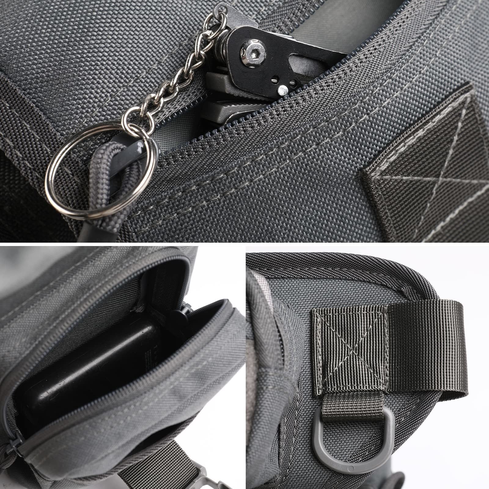 ☀AMPLE CAPACITY: 3 main compartments, 2 side pockets, 4 hidden pockets, enough to accommodate EDC equipment such as smartphones, power packs, wallets, sunglasses, digital cameras, tactical flashlights, keys, emergency first aid items, etc.