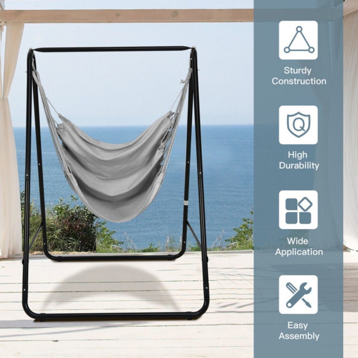 5.Easy Assembly: With the help of detailed instruction and all included accessories, the installation of this hammock chair stand with hanging swing is easy. And it is certified by ASTM and CPSIA for safety.