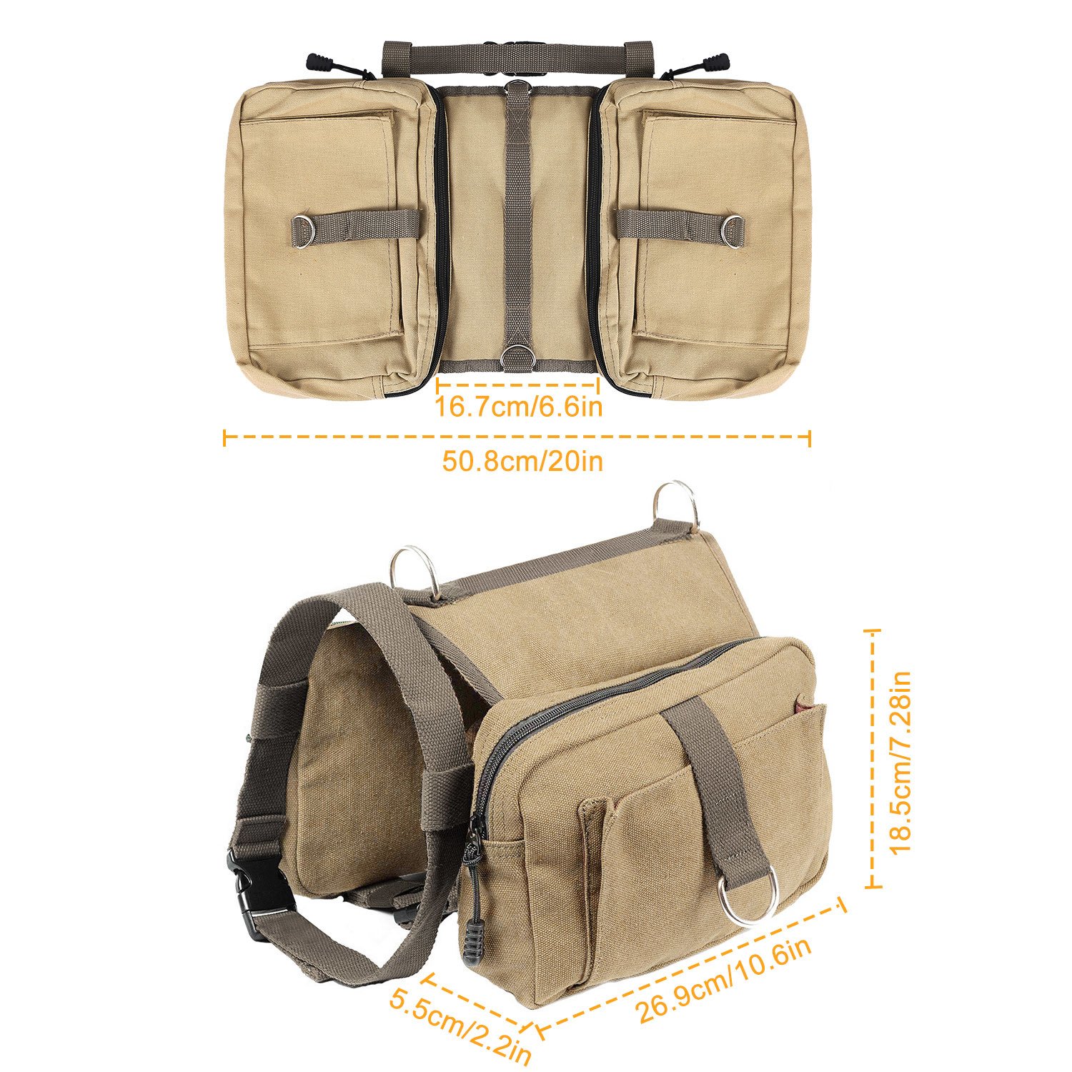 ** DURABLE & SOFT DOG PACK*:Made of comfortable cotton canvas; our dog backpack is durable and washable. Soft material will not make your dog feel tired of wearing it and hurt fur.